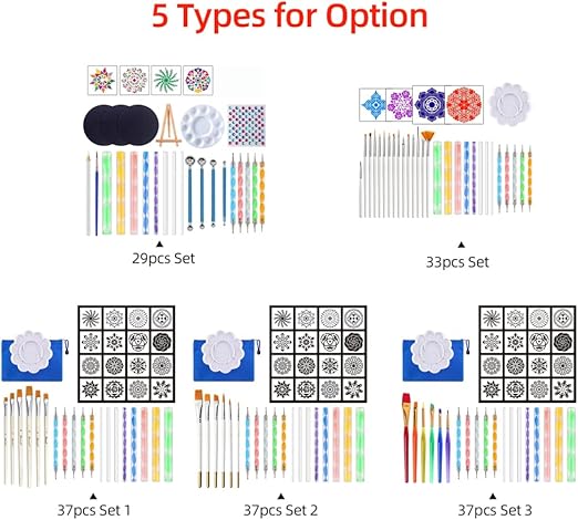 37 adet Mandala Noktalama Araçları Seti Şablonlar Palet Boya Fırçası Top Kalemler Boyama Kayalar Tırnaklar Tuval Boyama Sanatı Çizim