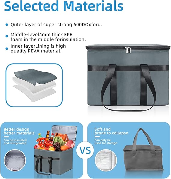 38 litre soğutucu çanta, katlanabilir, termal çanta, alışveriş çantası, soğutucu çanta, alışveriş çantası, 20 kg taşıma kapasitesi, yalıtımlı çanta, alışveriş çantası, piknik çantası, dış mekan