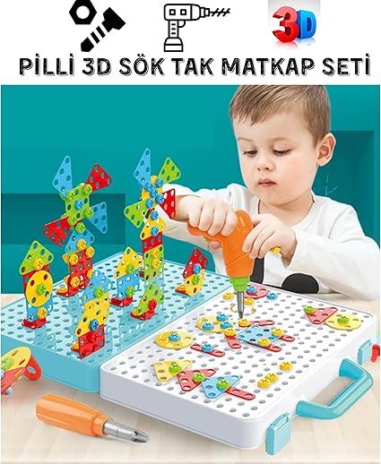 3D Yaratıcı 340 Parça Tamir Seti Pilli Matkaplı Sök Tak Çantalı Eğitici Tamir Setim