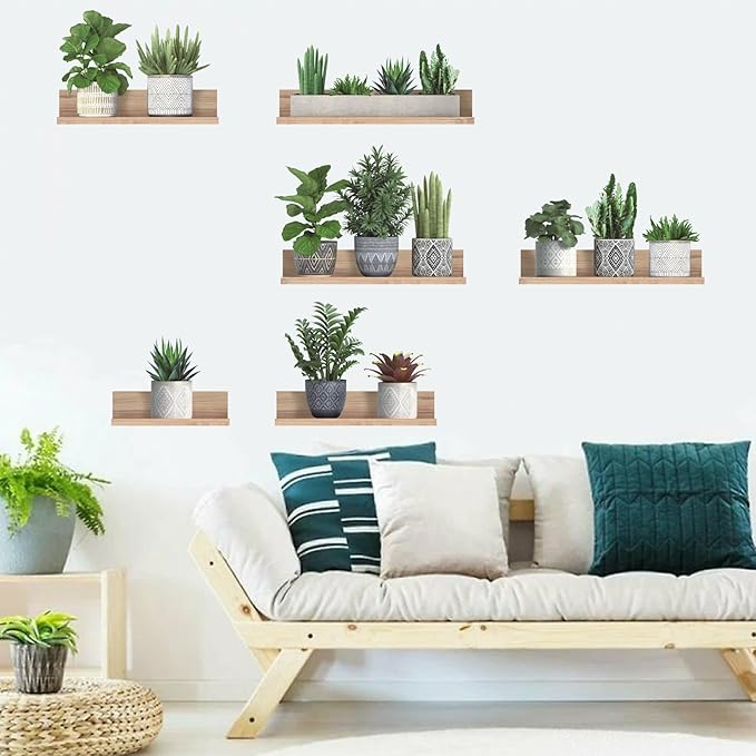 3D saksı bitkisi duvar resimleri: Bu yeşil bitki duvar çıkartmaları çok gerçekçidir ve evinize hızla doğal ve rahat bir atmosfer getirebilecek yumuşak renklere sahiptir