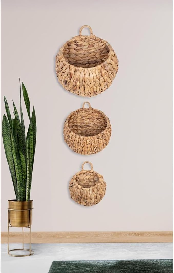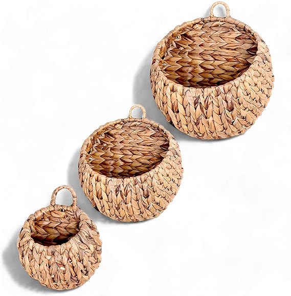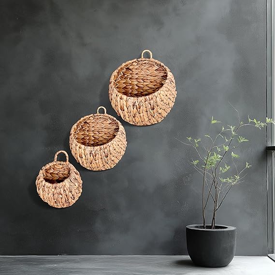 Dekoratif Görünüm: Bu 3’lü yuvarlak hasır saksı seti, el yapımı ve doğal görünümüyle evinize veya ofisinize şık bir hava katacaktır.