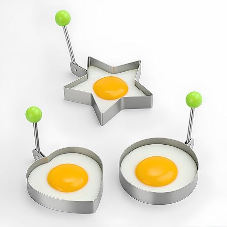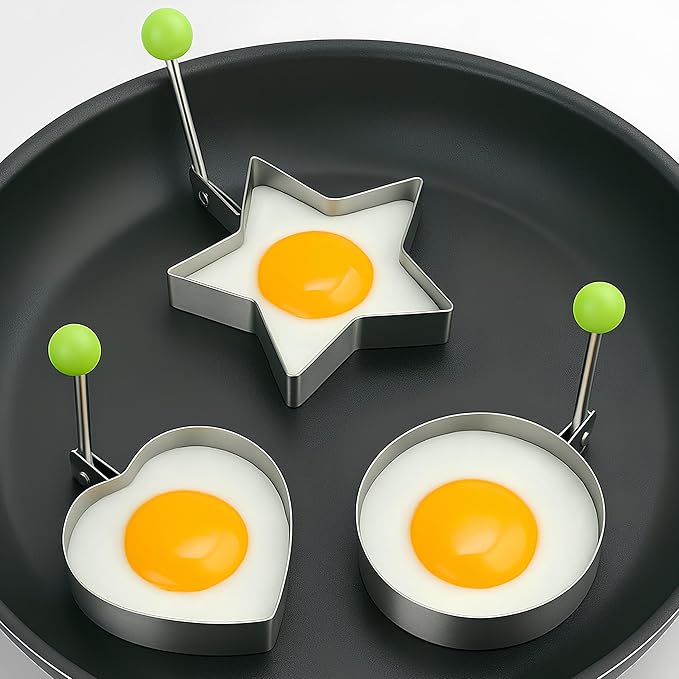 3’lü Metal Omlet ve Krep Kalıbı Seti | Yuvarlak, Kalp ve Yıldız Şekilli Yanmaz & Yapışmaz Pişirme Kalıpları | Kahvaltı, Yumurta, Pancake ve Krep için Şekil Verici