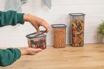 3’lü Set Sızdırmaz Kapaklı Kare Erzak Saklama Kabı 650Ml – 1300Ml – 1900Ml Antrasit