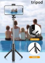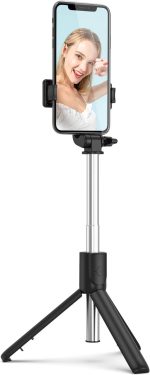 3’ü 1 Arada Bluetooth Selfie Çubuğu ve Tripod, 360° Dönebilir Başlık, 10m Kablosuz Bağlantı, iOS ve Android Tüm Cihazlar İle Uyumlu, Siyah