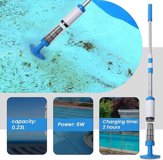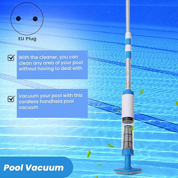 3’ü 1 arada kablosuz şarj edilebilir havuz elektrikli süpürgesi, el havuzu temizleyici, spa, küçük havuzlar ve moloz için (AB fişi)