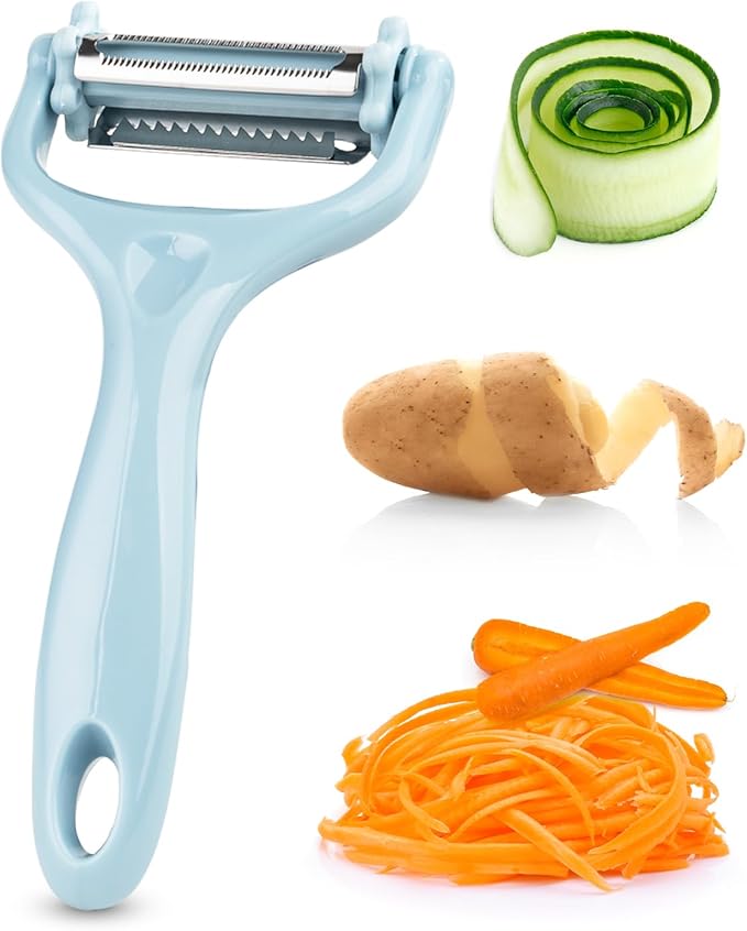 3’ü 1 Arada Patates ve Sebze Soyucu – Paslanmaz Çelik Bıçaklı, Düz + Tırtıklı + Jülyen Soyma, Ergonomik Sap, Bulaşık Makinesine Uygun, Kompakt ve Dayanıklı Mutfak Gereci