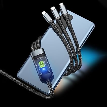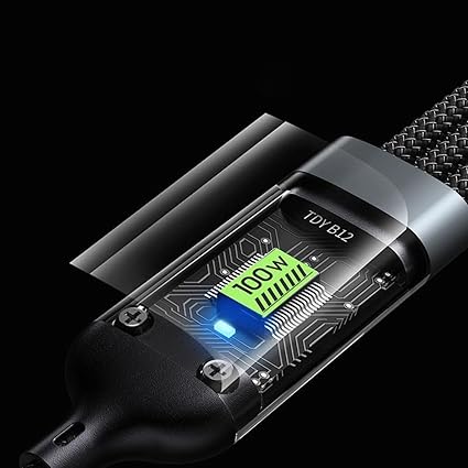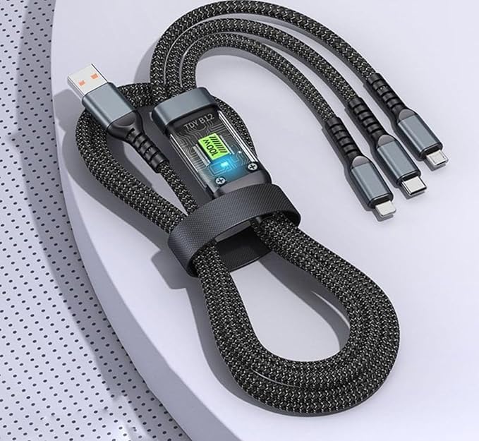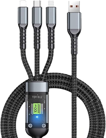 3’ü 1 arada USB Kablosu Hızlı Şarj, Şeffaf Aydınlık 100w Süper Hızlı Şarj Kablosu, Dayanıklı Naylon örgü, Tip-C, iPhone ve Android Cihazlar için Şarj Çözümü