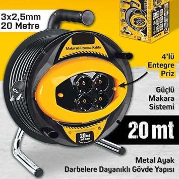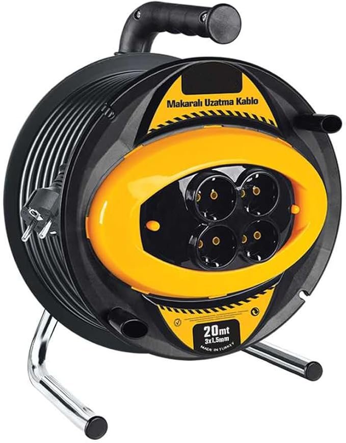 3×1,5mm kalınlığında, 20 metre uzunluğunda makaralı kablo ile geniş kullanım alanı sunar. Metal ayak tasarımı sayesinde dayanıklılığı artırırken, priz bağlantıları kolayca takılıp çıkarılabilir.