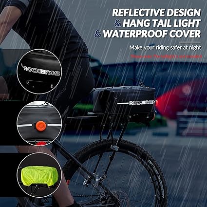 SU GEÇİRMEZ: ROCKBROS Bisiklet Bagaj Taşıma Çantası su geçirmez PU malzemeden ve su geçirmez fermuardan yapılmıştır. Bagaj taşıma çantasında yağmur örtüsü vardır, eşyalarınızı mükemmel bir şekilde koruyabilir.