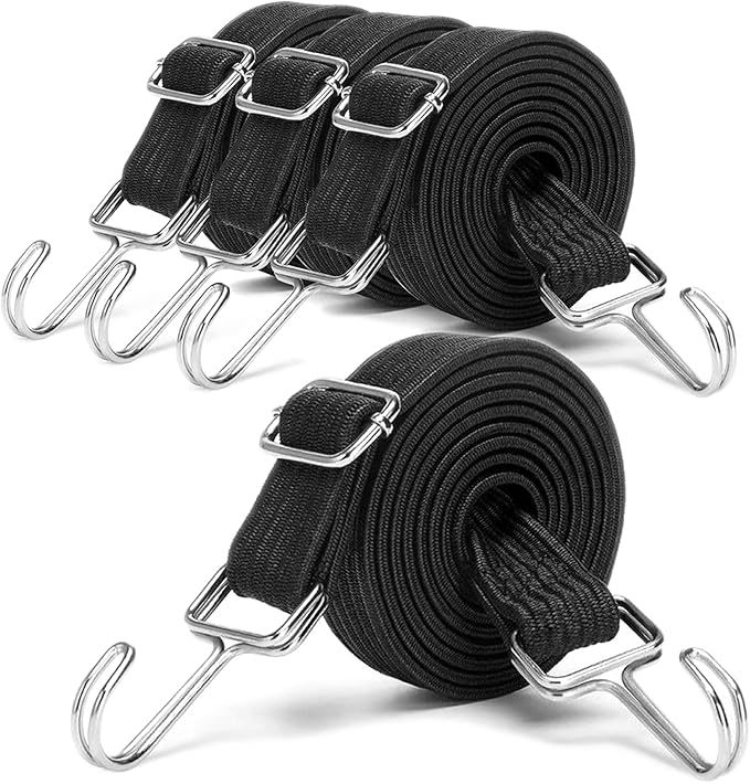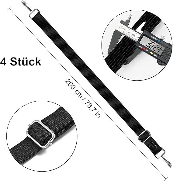 4 adet ayarlanabilir germe lastiği, kancalı, 2 m lastik genişletici lastik, geniş bagaj gergisi, bisiklet, motosiklet, transporter için (siyah)