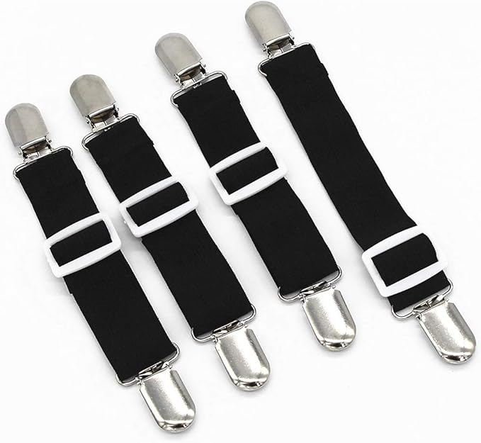 4 adet – Çarşaf, kilit, pantolon askısı, elastik çarşaf gergisi, yatak kılıfları, kanepe, masa örtüsü çizmesi, bacak kayışı klipsleri