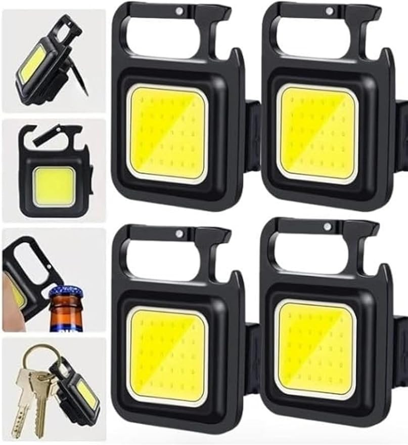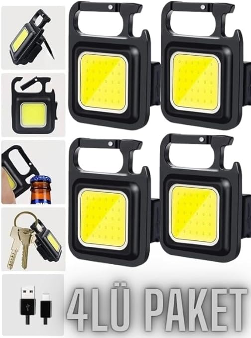 4 Adet Led Anahtarlıklı Metal Kasa El Feneri Şişe Açacağı Usb’li Şarj Edilebilir Cep Boy Cob 800mah
