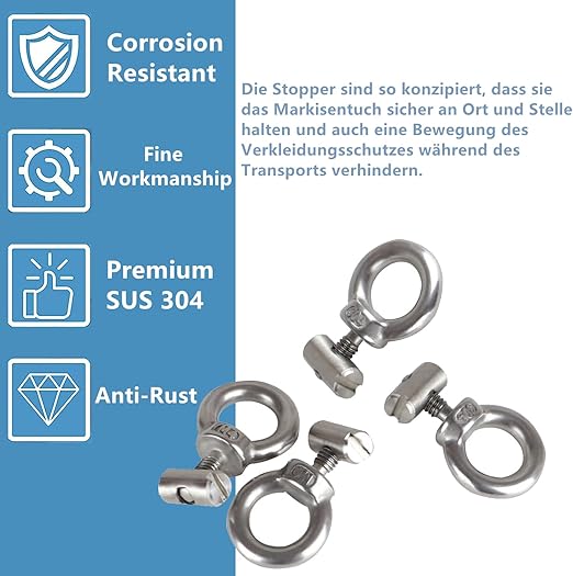 Tente Essentials: M4 x 12 mm x 6 mm çap, 5 mm ila 8,5 mm tente rayları için uygundur. Paket içerisinde 4 adet 304 paslanmaz çelik kenar çubuğu bulunur