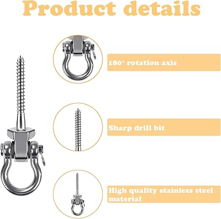 4 Adet Salıncak Kancası, 180° Salıncak Askıları, Kapasite 250 kg, Salıncak Braketi, Asma Tavan Kancası Asma Hamak, Yoga Salıncakları, Sundurma Salıncakları