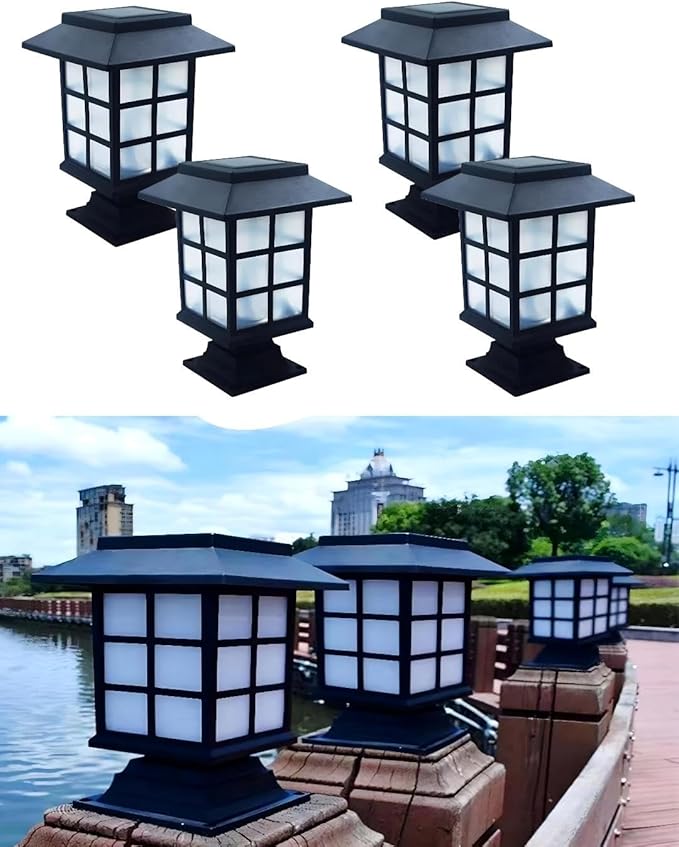 4 Adet Solar Güneş Enerjili Helios15W Led Set Üstü Bahçe Aydınlatması, SU GEÇİRMEZ, 3200K-6500K, Sütun Üzerİ Armatür Patika, Teras, Çit, Duvar, Balkon Dekorasyonu, Peyzaj Işık 210 * 135 MM