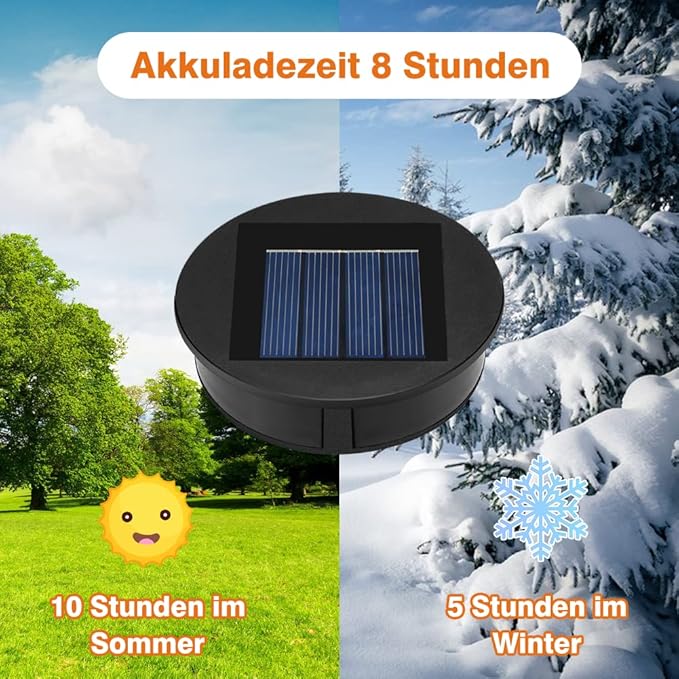 【Uzun çalışma süresi】8 saatlik tam şarj olduktan sonra bu solar lamba yedek parçaları yazın 10 saate kadar ve kışın 5 saate kadar yanabilir. Bu, evinizi veya bahçenizi hava karardıktan sonra bile aydınlatmak için garantili bir kullanım süresi anlamına gelir.