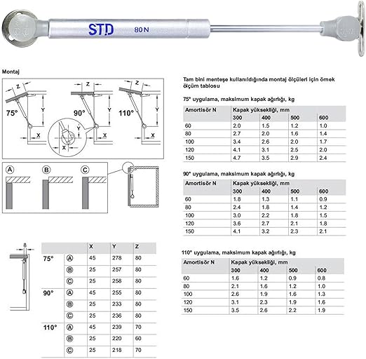 4 ADET STD Dolap Amortisörü Gazlı Piston Kapak Hidroliği 27 cm 80NUygunluk: 9 adet stokta
