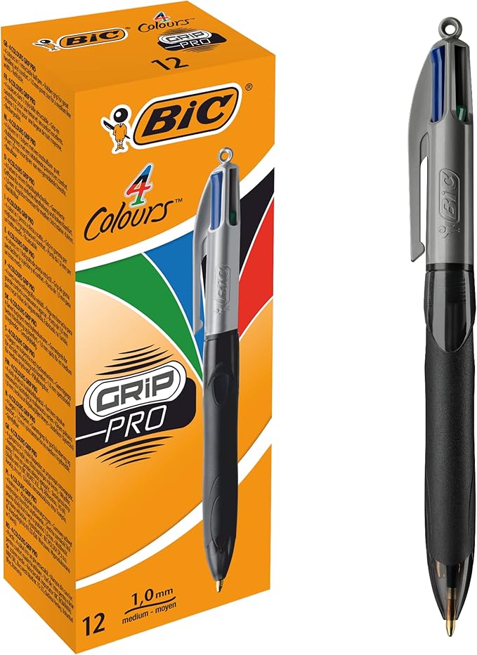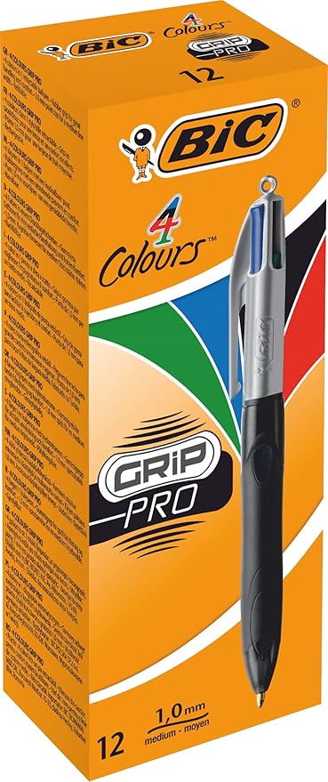 4 Colours Grip Pro Tükenmez Kalem 12’Li Kutu, Kauçuk Tutacak, 1.0mm Uç, Tek Kalemde Mavi, Kırmızı, Yeşil ve Siyah Renkler