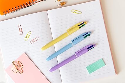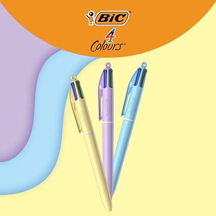Ünlü BIC 4 Colours tükenmez kalem neşeli notlar için 3 farklı pastel gövde renginde mevcuttur
