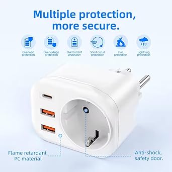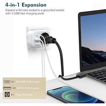 4 in 1 Tekli Usb li Priz, 2x usb 1x type-c giriş, 2500W