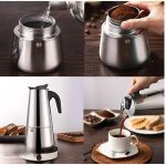 Çelik mokapot kahve makinesi paslanmaz çelik malzemeden üretilmiştir, ergonomik siyah sapı ısıya dayanıklıdır ve tüm ocak tipleriyle uyumludur