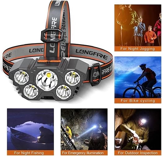 4 Modlu Kafa Lambası USB Şarj Edilebilir Feneri Dahili Pilli Su Geçirmez