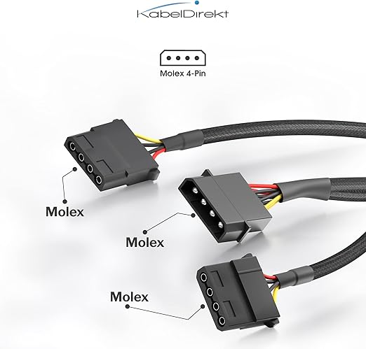 – 4 pin Molex – 2 x 4 pin Molex Y kablosu 30 cm