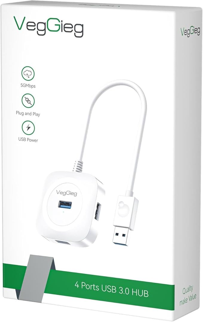 VegGieg USB 3.0 4 Portlu Çoklayıcı Hub Beyaz, USB üzerinden bilgisayarınıza 4 adet USB 3.0 bağlantı noktası eklemenize olanak tanır. 5Gbps veri aktarımı sayesinde gecikme olmadan bağladığınız cihazları kullanabilirsiniz.
