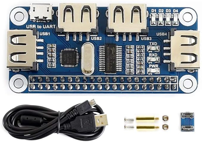 4 Port USB HUB Hubs HAT Compatible with USB2.0 1.1 for RPi Raspberry Pi Zero A+ B B+ 2 3 Model B Serial Debugging Onboard USB to UART
