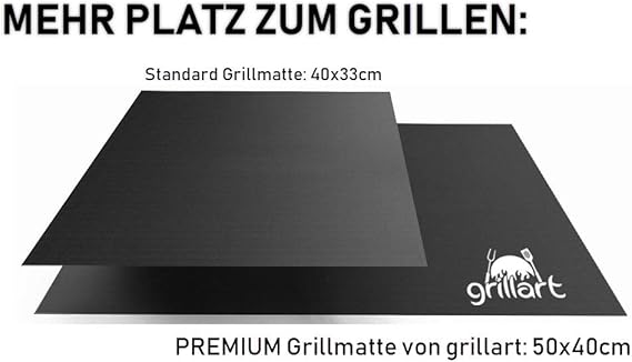 Birçok kez kullanım: grillart bize en zorlu taleplere dayanacak bir ızgara matı sunmamız önemlidir. Bu nedenle 0,3 mm ekstra kalınlık ve özellikle yüksek kaliteli bir malzeme tercih ettik. Deneyin, hayran kalacaksınız!