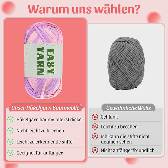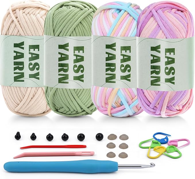 4 x 50 g tığ yünü, yeni başlayanlar için, kolay iplik, tığ işi için kalın iplik, bölünmemiş iplik, kalın pamuk iplik, tığ işi kolay iplik, tığ işi için, tığ işi aksesuarı ile birlikte