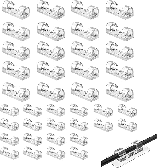 40 Adet Yapışkanlı Kablo Klipsi Seti – Kablo Düzenleyici, Masa Üstü ve Duvar İçin Kablo Tutucu, Kablo Sabitleyici Aparat – Ev Ofis Kablo Yönetimi, USB, Şarj, Ethernet, Mouse İçin Uygundur