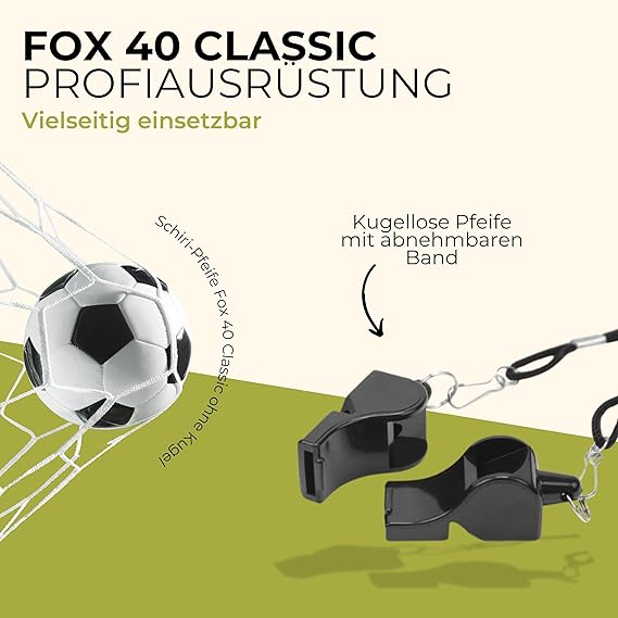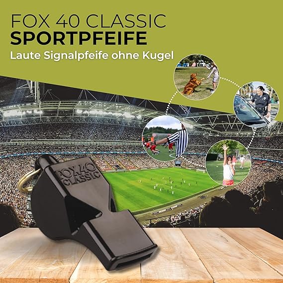 Bantlı ve ağızlıklı Fox 40 hakem düdüğü, temiz bir düdük sesi ile karakterize edilir.