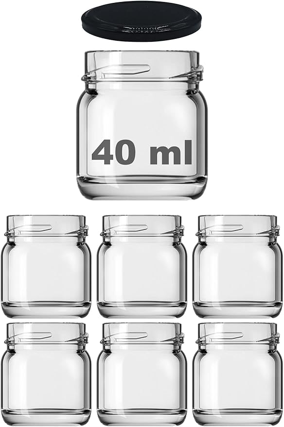 40 ml Farklı Boyutlarda Kavanoz 40 cc Konserve Metal Kapaklı Cam Kavanoz 6 Adet (Şeffaf, 40 cc)