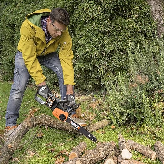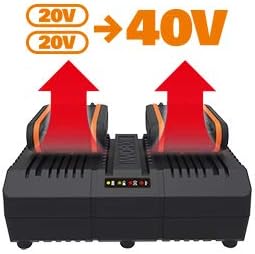 40 V akülü zincirli testere WG384E, 2 x 2,0 Ah, Powershare, fırçasız motor, aletsiz zincir germe sistemi, hızlı durdurma zincir freni, çift şarj cihazı, 35 cm çubuk uzunluğu, 2 x 18 V