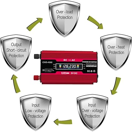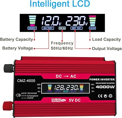 4000W Tepe Güç Modifiye Sinüs Dalgası İnverter LED Ekran 300W Anma Güç Çevirici DC 12V – AC 220V Dönüştürücü 2 USB Bağlantı Noktalı AC Soketli Yüksek Frekanslı Araç Güç Şarj Cihazı İnvertörü