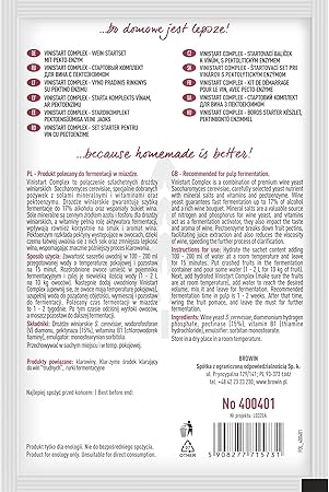 400401 Vinistart Complex 10 – 25 L meyve için beyaz ve kırmızı şarap için,%17 alkol, şarap mayası, besin tuzu, vitaminler ve mineraller, hızlı mayalama, pudra