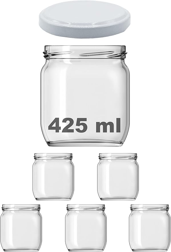 425 ml Metal Beyaz Kapaklı Şeffaf Cam Kavanoz 5 Adet