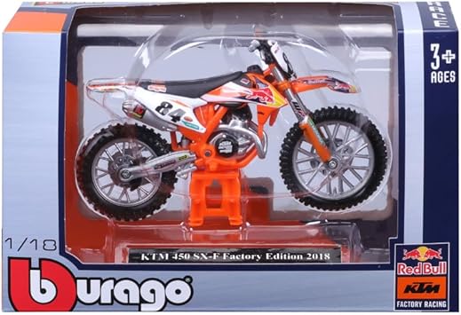 12 adet RedBull KTM 450 SX-F, KTM 450 Paris Dakar ve KTM 450 Paris Dakar 2019 1:18 ölçekli metal motosiklet serisi.