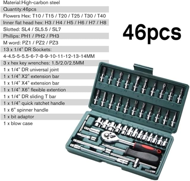 46 Parça Mini Lokma Takımı Otomatik Cırcırlı 1/4″ Wrench Set Yüksek Kalite Kombinasyon Alet Seti