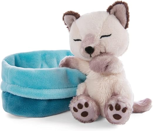47893 Soft Basket 12 cm – Sleeping Pets Cuddly Toy Siamese Cats for Girls, Boys & Babies – Fluffy Stuffed Cuddle, Play & Sleep with – Cosy Plush Animals, Paws, Beige