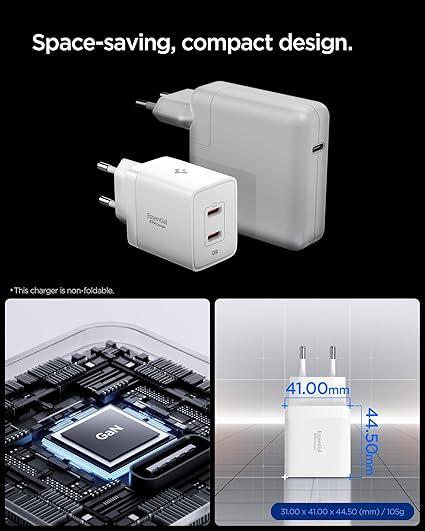 47W USB-C 2 Port Mini Hızlı Şarj Aleti Samsung PPS 2.0 / Isı Düşürücü GaN Pro Destekli Akım Korumalı Güç Adaptörü iPhone & Android & iPad & MacBook Type-C – ACH08707