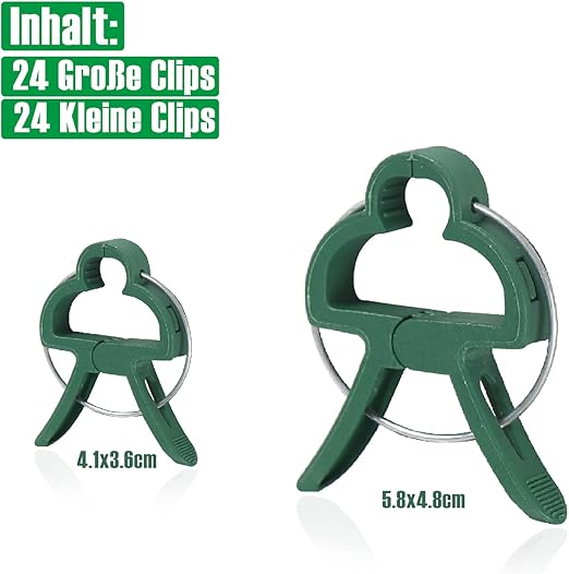 48 adet bitki klipsi, domates, salatalık, tırmanma gülleri ve diğer sarmaşık bitkiler için, sağlam, yüksek kaliteli bitki mandalı, bitkiler için tırmanma yardımcısı (24 büyük + 24 küçük)