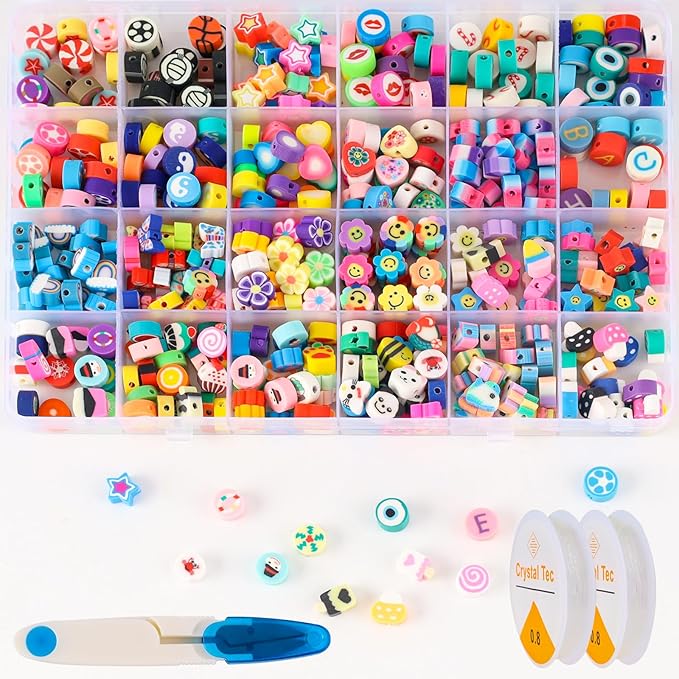 480 Adet Boncuk Bileklik Kız Çocuk Renkli ve Sevimli Kil Boncuk Boncuk Kiti Bilezikler, Kolyeler, Küpeler, Kendin Yap El Sanatları için
