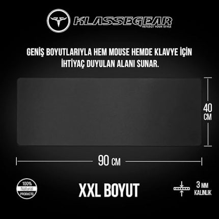 Pro Black Edition – Dikişli Kenar 70×30, 90×40, 100×50 ve 120×60 cm Oyuncu Gaming Mouse Pad (Siyah, 90×40 cm)