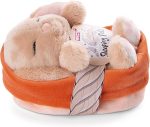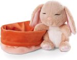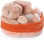 48708 Soft Toy Sleeping Pets Bunny Caramel in Peach Basket 12cm
