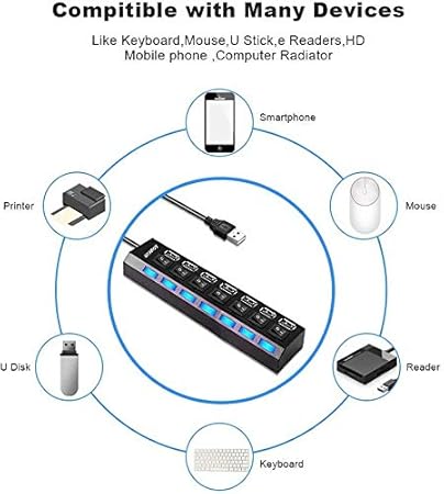 7 Port: Toplam 7 USB bağlantı noktası ile cep telefonunuzdan bilgisayarınızın tüm cihazlarını kollektif olarak yönetin.