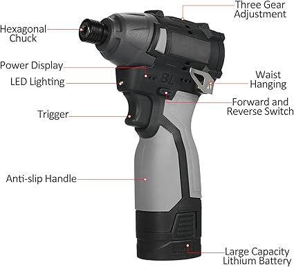 Battery: Equipped with a built- 2000mAH lithium-ion battery, this cordless electric screwdriver will provide a and longer screw-drivg experience.