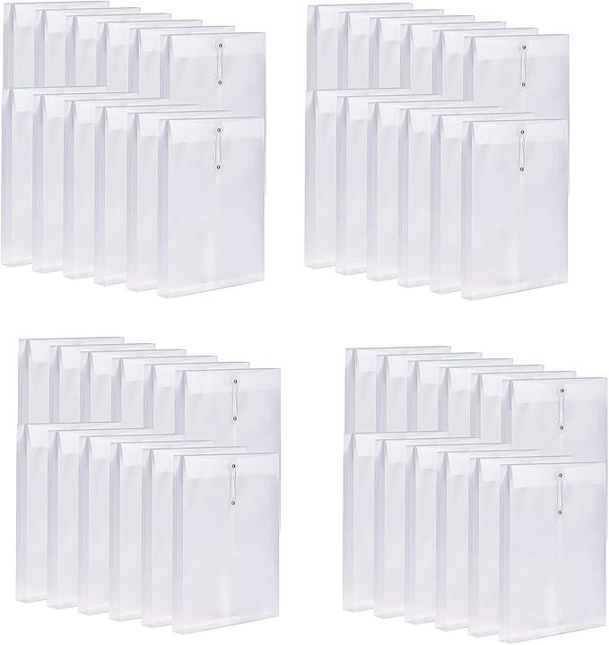 48’li Paket Şeffaf Plastik Zarflar Zarflar Genişletilebilir Dosyalar Düğmeli ve A4 Bağlamalı Belge Klasörleri