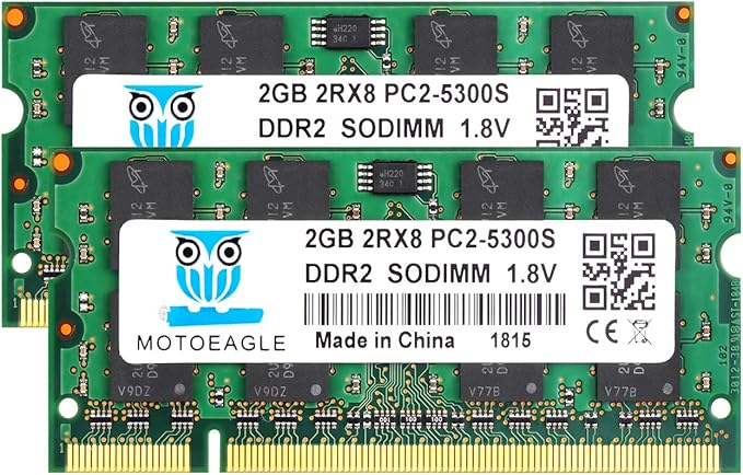 Üstün uyumluluk: DDR2 667 MHz PC2 5300S 4GB Kit (2×2 GB) 200-pin NON-ECC tamponu, tamponsuz dizüstü bilgisayarlar için. Seçkin MacBook Pro, iMac, Mac mini modelleri ve AMD, Intel, Mac sistemleri için geliştirilmiştir.